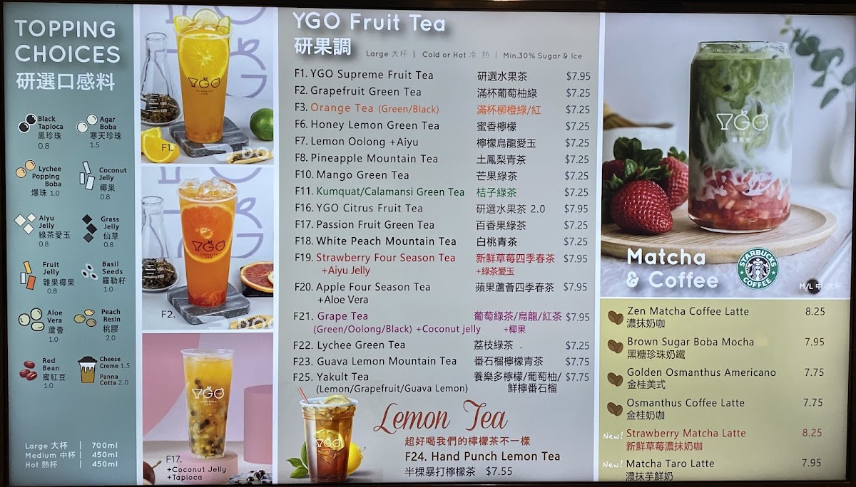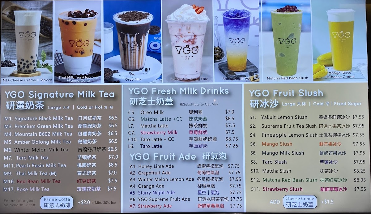 Step inside YGO Juice & Tea Lab, and you’ll be greeted by a bright, clean environment that invites you to sit back and savor your drink. The friendly staff is incredibly knowledgeable and eager to guide you through the diverse menu, which features an array of beverages that cater to every taste. Whether you’re a fruit fanatic or a classic milk tea lover, there’s something here for you.